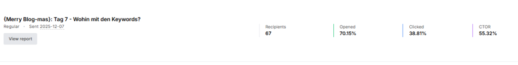 Ja, manche Türchen wurden häufiger geöffnet als andere, und ein paar haben sich zwischendurch wieder abgemeldet. Das ist völlig okay – es gab schließlich unglaublich viele tolle Adventskalender rund ums Bloggen, Online-Business & Co.