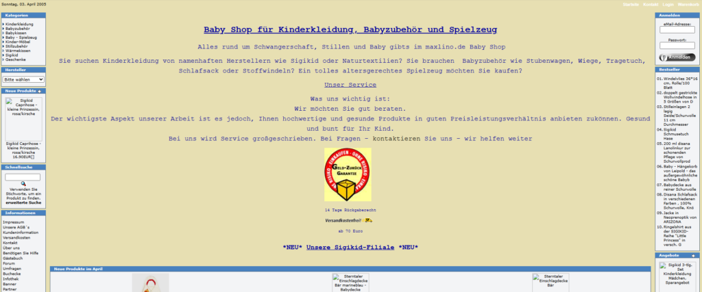Denn die Konkurrenz war schon damals enorm. Große Versandhäuser, bekannte Kataloge und erste große Online-Shops kämpften um genau dieses eine Keyword. Und ich mittendrin, mit unserem kleinen Shop für Baby- und Kindersachen.